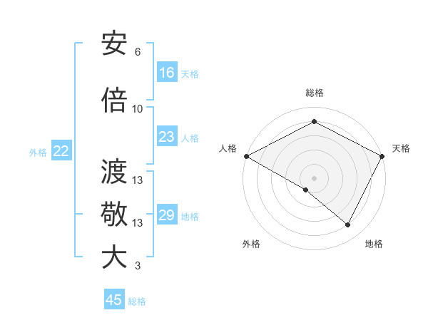 安倍 渡敬大さんを姓名の画数から五運を鑑定