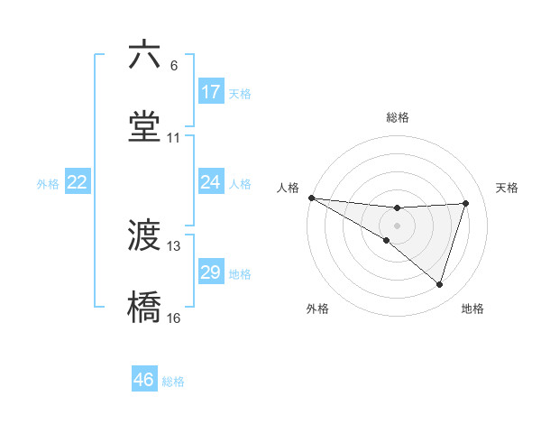六堂 渡橋さんを姓名の画数から五運を鑑定
