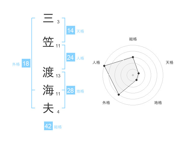 三笠 渡海夫さんを姓名の画数から五運を鑑定