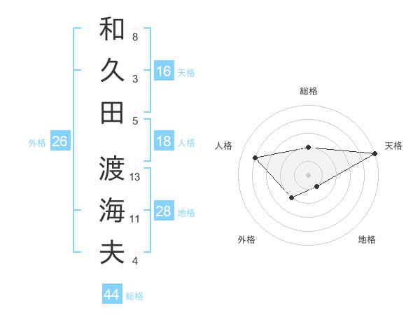 和久田 渡海夫さんの総格は44画の2点!
