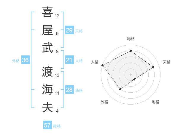 喜屋武 渡海夫さんを姓名の画数から五運を鑑定