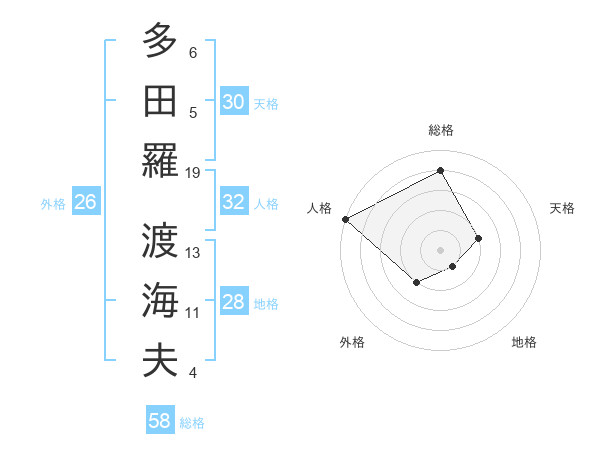 多田羅 渡海夫さんを姓名の画数から五運を鑑定