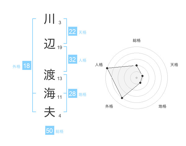 川辺 渡海夫さんの総格は50画の2点!