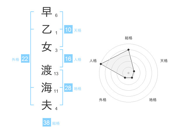 早乙女 渡海夫さんを姓名の画数から五運を鑑定