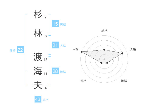 杉林 渡海夫さんの総格は43画の2点!