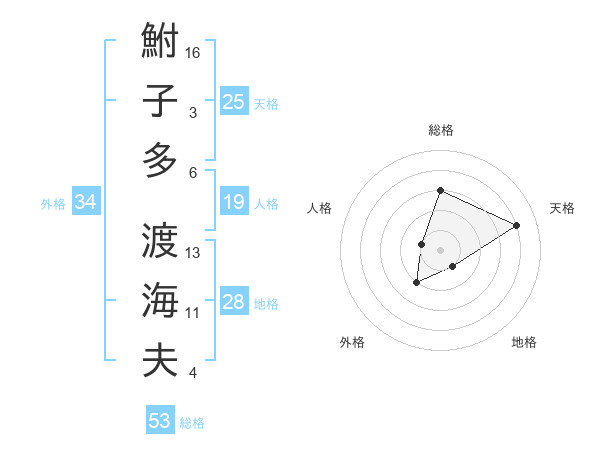 鮒子多 渡海夫さんを姓名の画数から五運を鑑定