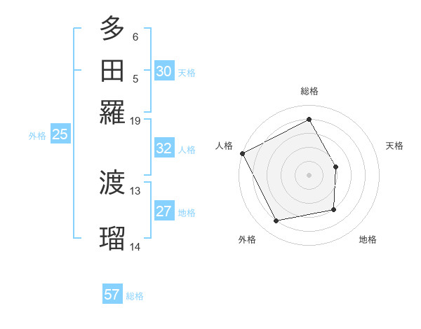 多田羅 渡瑠さんを姓名の画数から五運を鑑定