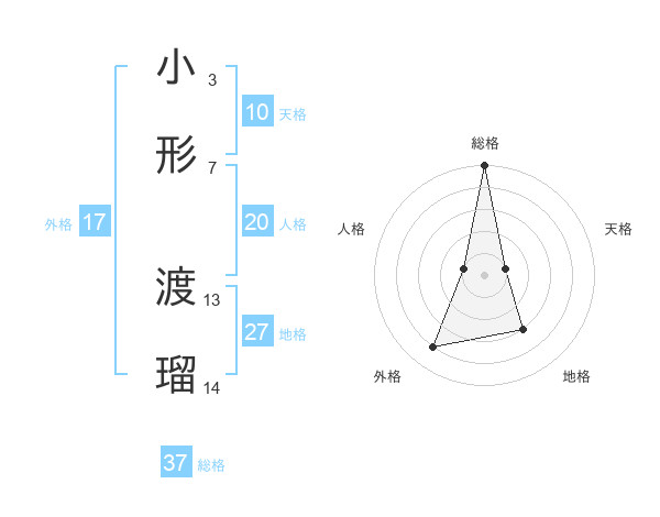 小形 渡瑠さんの総格は37画の5点!
