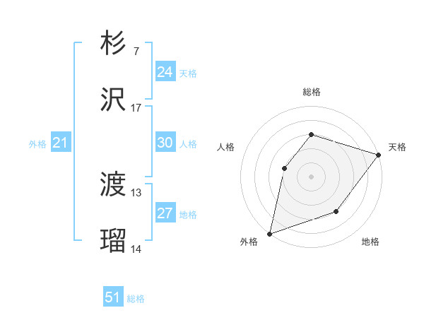 杉沢 渡瑠さんを姓名の画数から五運を鑑定