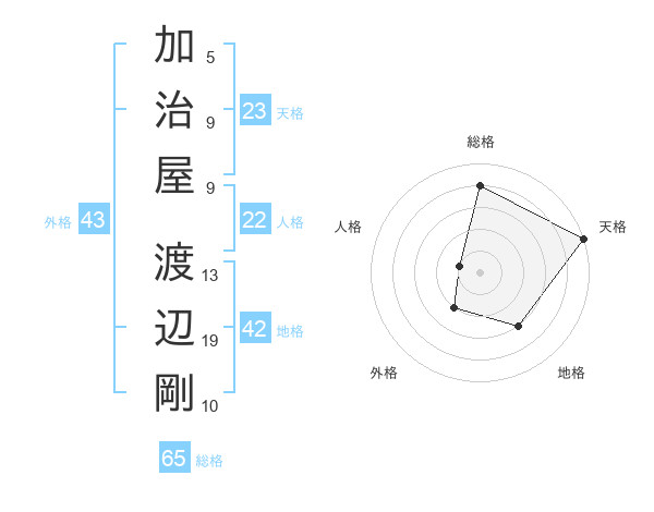 加治屋 渡辺剛さんの総格は65画の4点