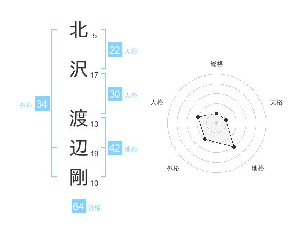 北沢 渡辺剛さんを姓名の画数から五運を鑑定