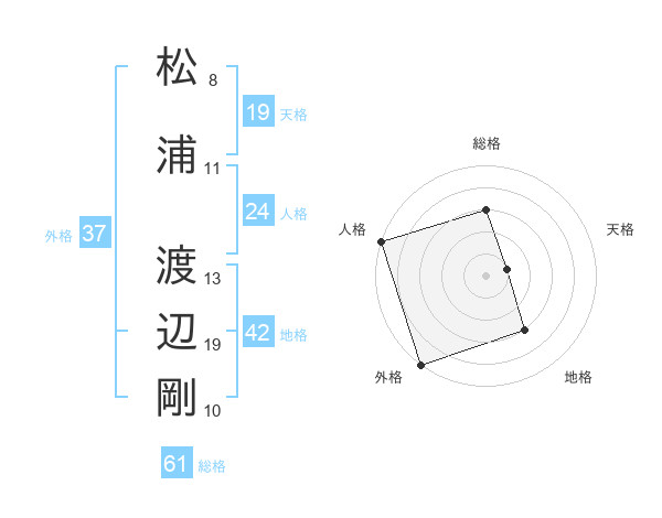 松浦 渡辺剛さんを姓名の画数から五運を鑑定