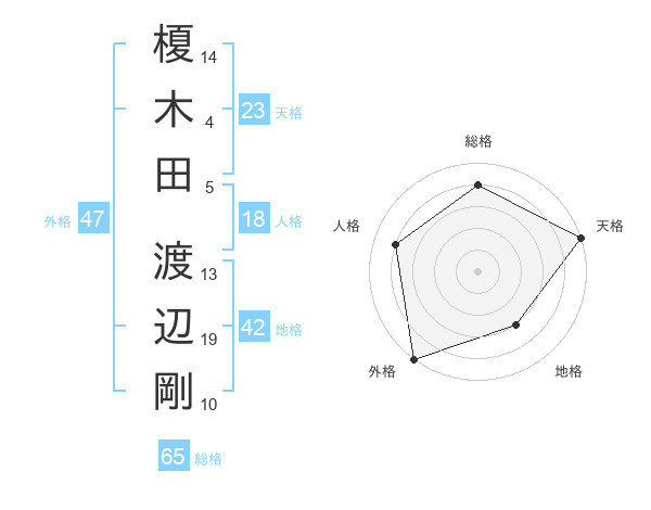 榎木田 渡辺剛さんの総格は65画の4点!