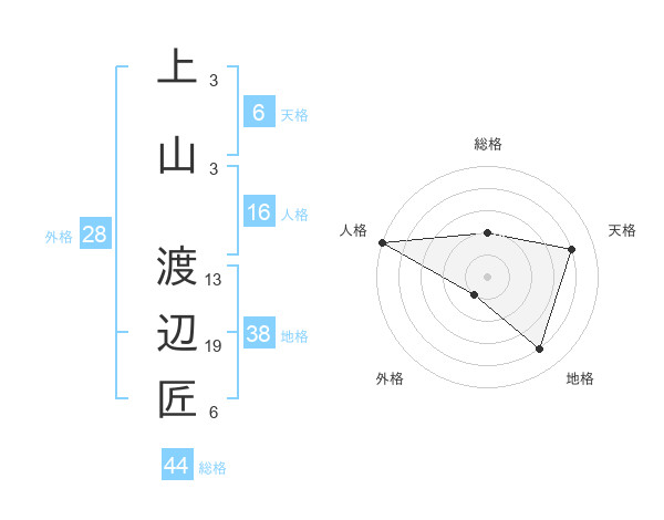 上山 渡辺匠さんを姓名の画数から五運を鑑定