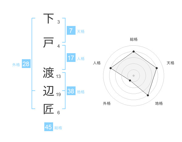 下戸 渡辺匠さんを姓名の画数から五運を鑑定