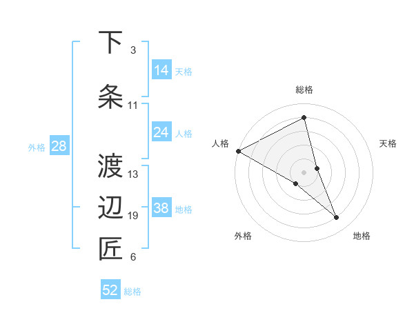 下条 渡辺匠さんを姓名の画数から五運を鑑定
