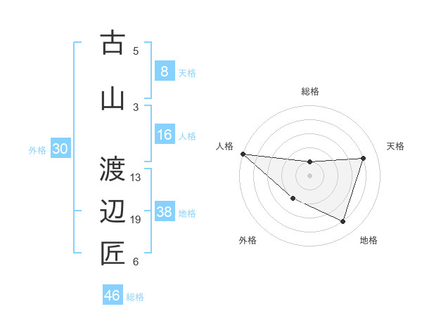 古山 渡辺匠さんを姓名の画数から五運を鑑定
