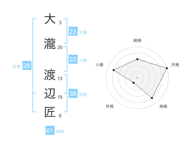 大瀧 渡辺匠さんを姓名の画数から五運を鑑定