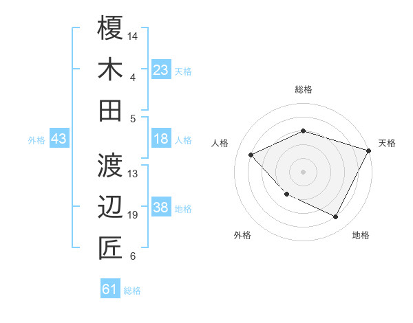 榎木田 渡辺匠さんを姓名の画数から五運を鑑定