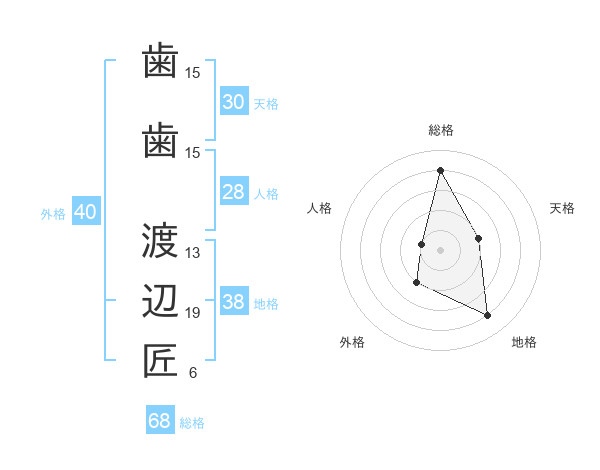 歯歯 渡辺匠さんを姓名の画数から五運を鑑定