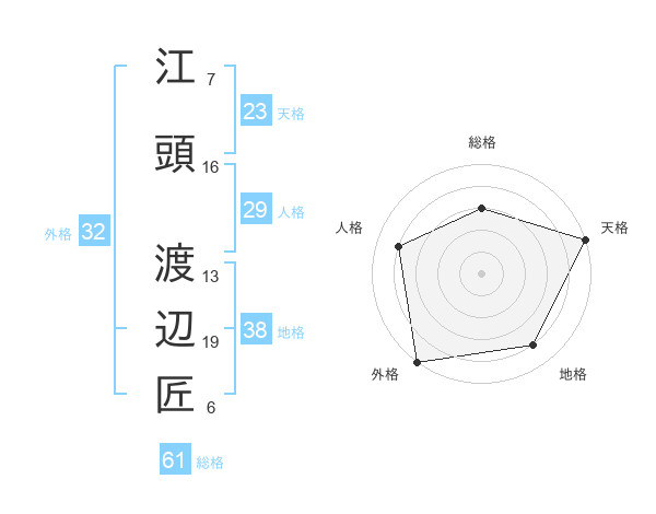 江頭 渡辺匠さんを姓名の画数から五運を鑑定