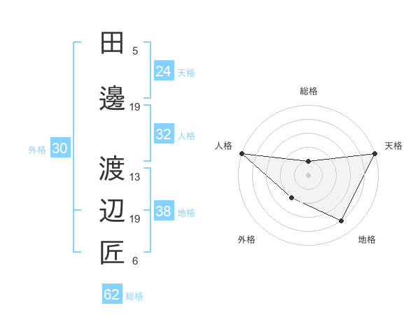田邊 渡辺匠さんを姓名の画数から五運を鑑定