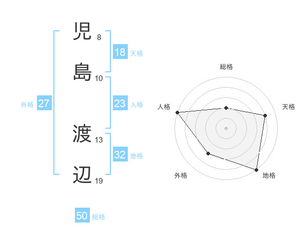 児島 渡辺さんを姓名の画数から五運を鑑定