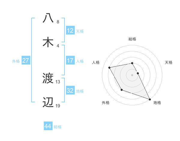 八木 渡辺さんの総格は44画の2点!