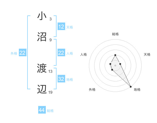 小沼 渡辺さんの総格は44画の2点!