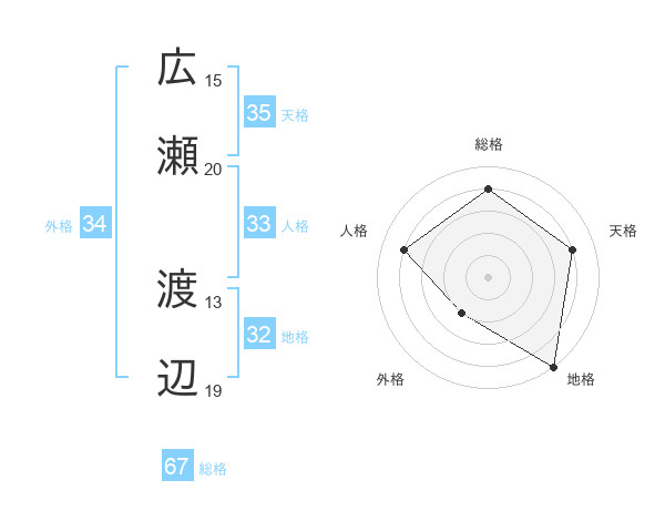 広瀬 渡辺さんの天格は35画の4点!