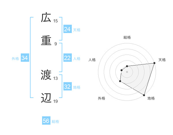 広重 渡辺さんの総格は56画の1点!