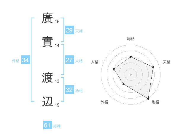 廣實 渡辺さんの総格は61画の3点!