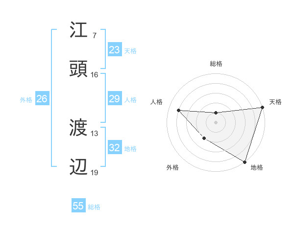 江頭 渡辺さんの総格は55画の1点!