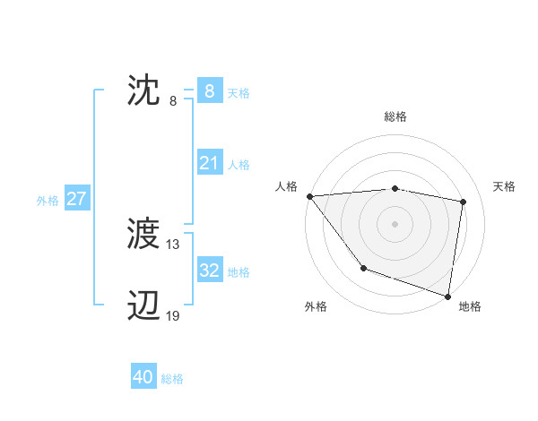沈 渡辺さんを姓名の画数から五運を鑑定