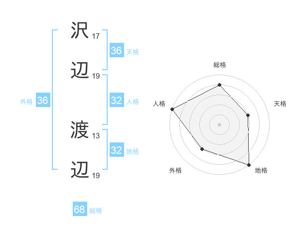 沢辺 渡辺さんの外格は36画の3点!