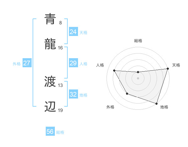 青龍 渡辺さんの総格は56画の1点!