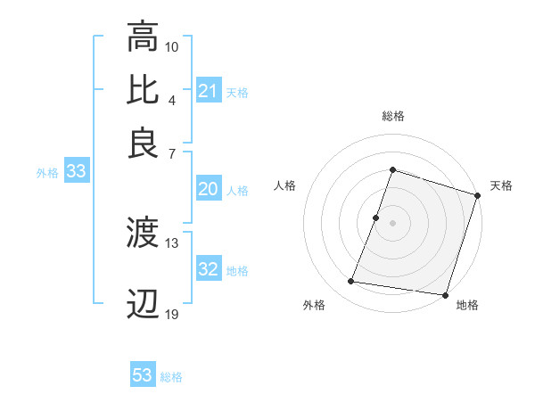 高比良 渡辺さんの総格は53画の3点!