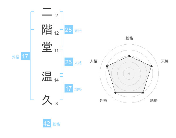 二階堂 温久さんの地格は17画の4点!