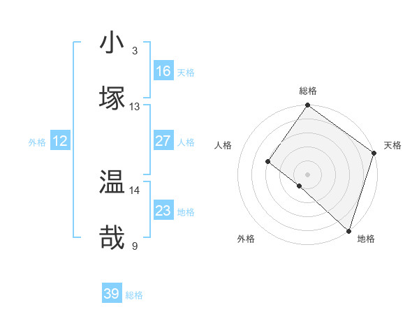 小塚 温哉さんの総格は39画の5点!