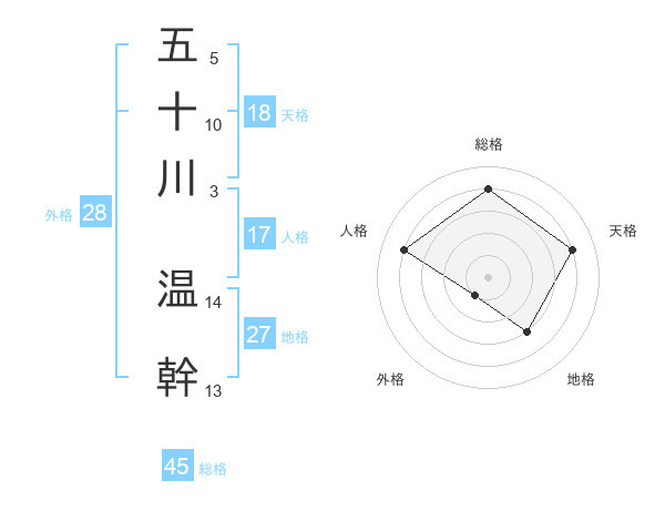 五十川 温幹さんの総格は45画の4点!