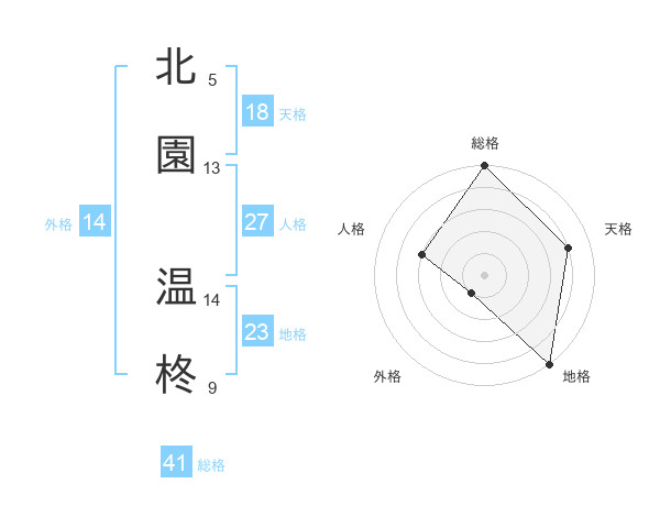 北園 温柊さんの総格は41画の5点!