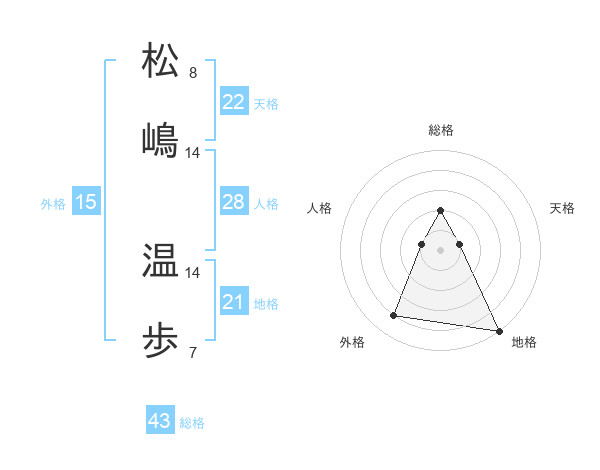 松嶋 温歩さんを姓名の画数から五運を鑑定