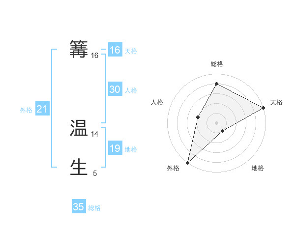 篝 温生さんの総格は35画の4点!