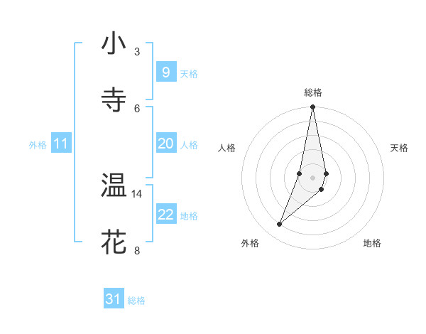 小寺 温花さんの総格は31画の5点!