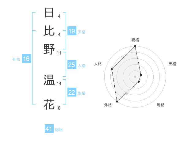 日比野 温花さんの総格は41画の5点!