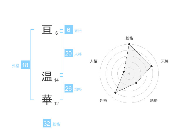 亘 温華さんの総格は32画の5点!