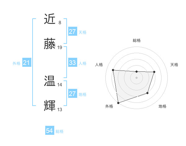近藤 温輝さんの総格は54画の1点!