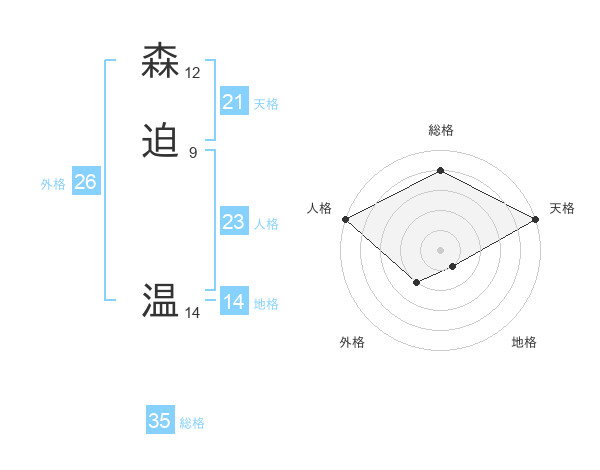 森迫 温さんの総格は35画の4点!