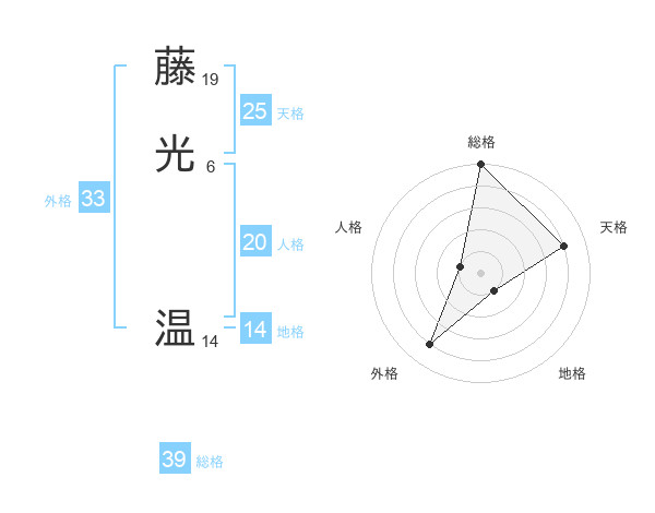 藤光 温さんの総格は39画の5点!