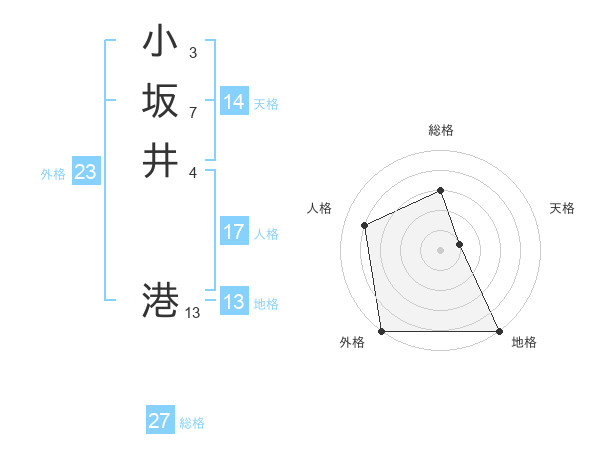 小坂井 港さんの総格は27画の3点!